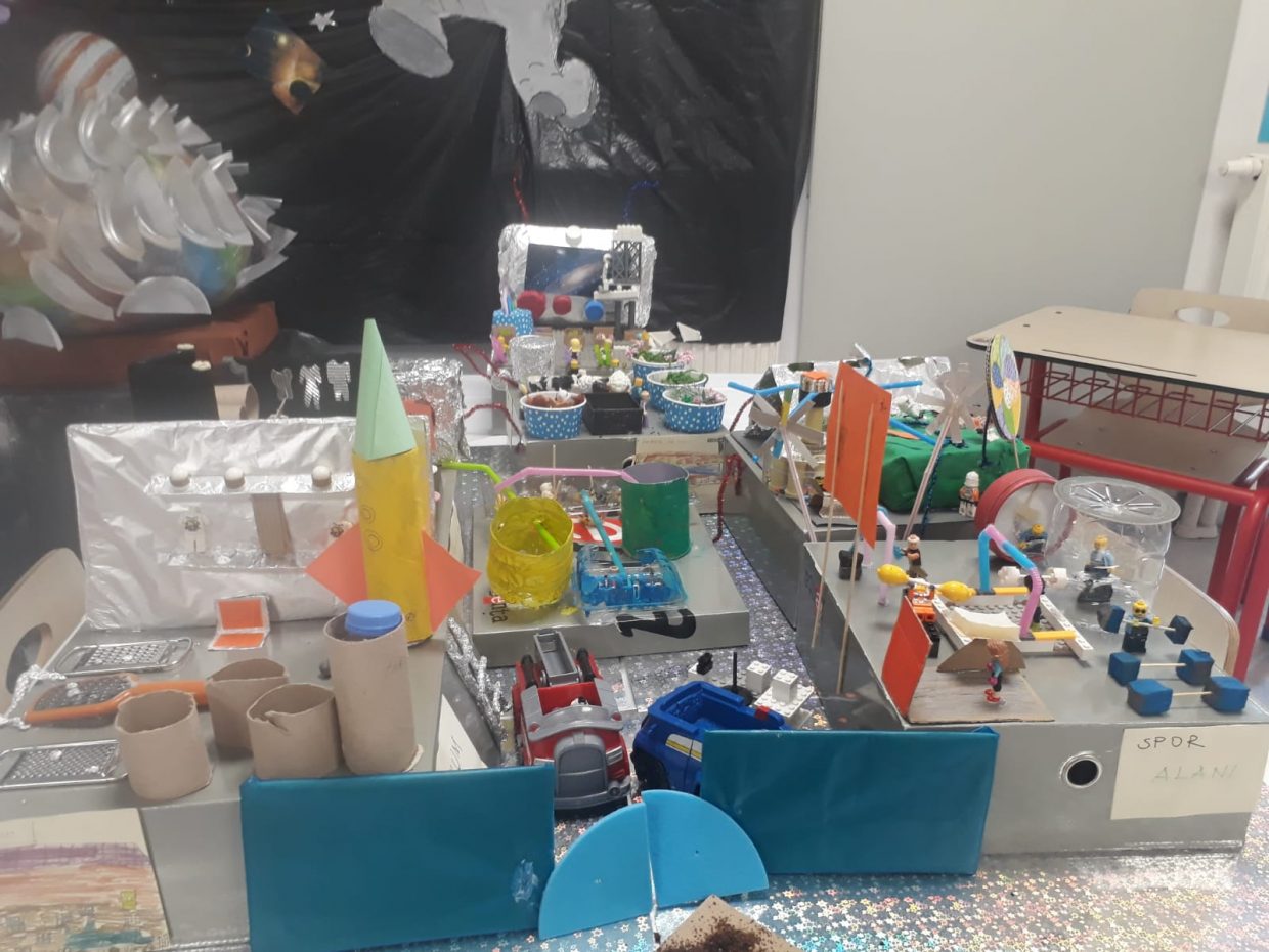 3.sınıf öğrencilerimiz bu yıl “Uzay” temasına bağlı portfolyo sunumlarını gerçekleştirdi. Dünya’mızdaki yaşam alanlarını zorlayan çevresel faktörleri inceleyen öğrencilerimiz, yeni bir gezegen arama yolcuğuna çıkarken Spacecraft, Isolar, Aurosma gibi uygulamaları kullanarak farklı açılardan neler yapabileceklerini düşündüler. Kendi gezegenlerini oluşturan öğrencilerimiz, yaratıcı çalışmalarını aileleriyle paylaştılar.